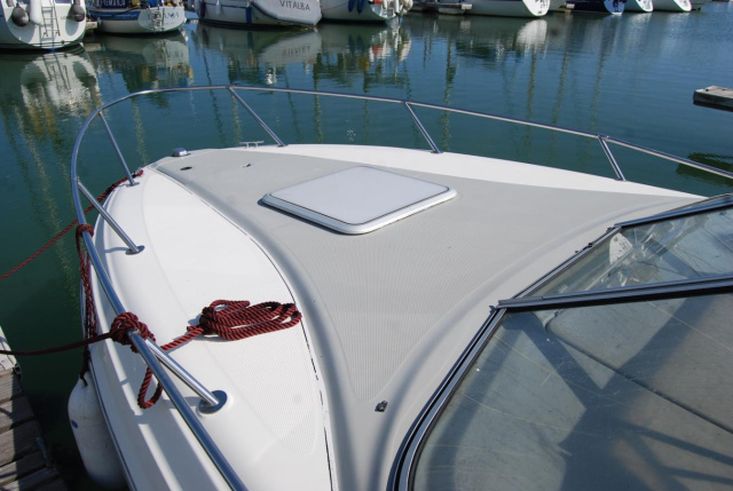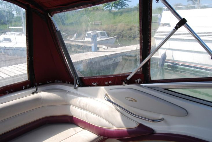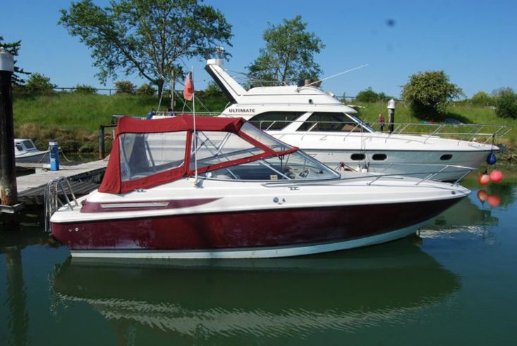 Built in 1997. GRP construction with burgundy & white topsides, aft cockpit, bathing platform, planing hull, 2 berths